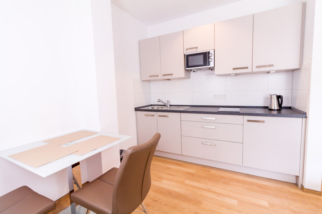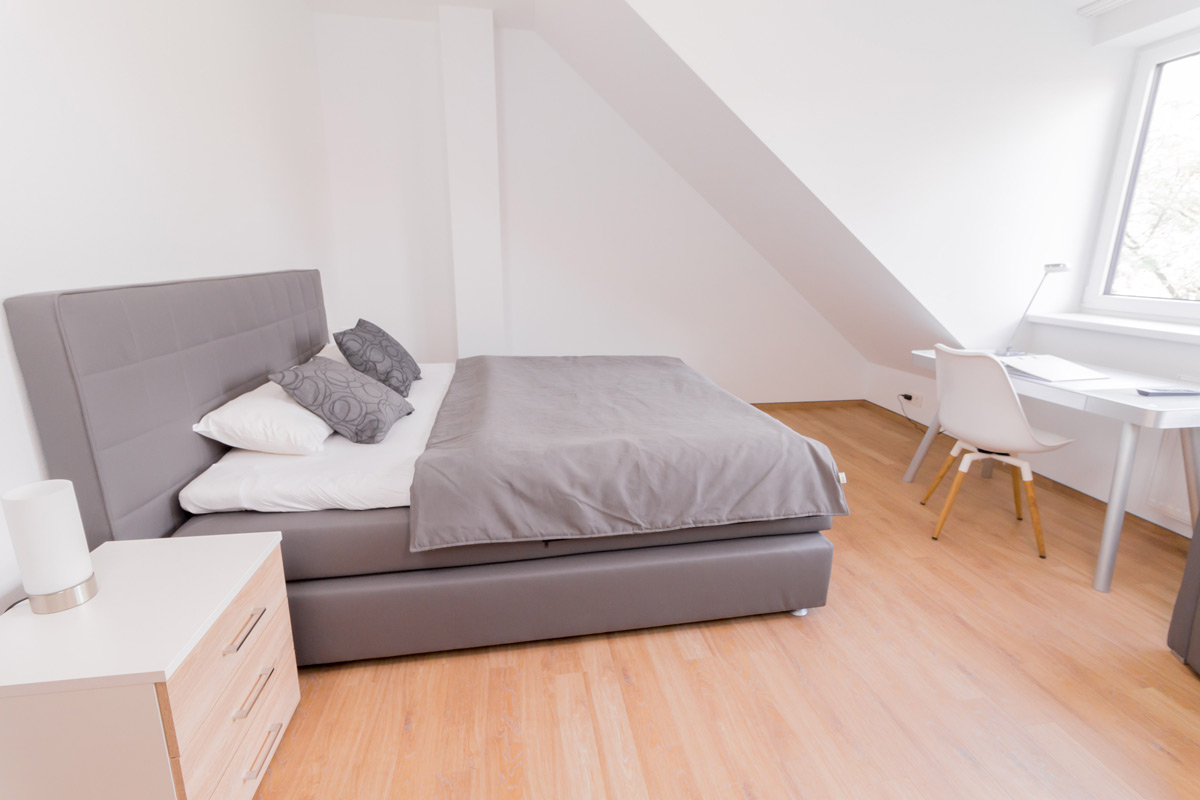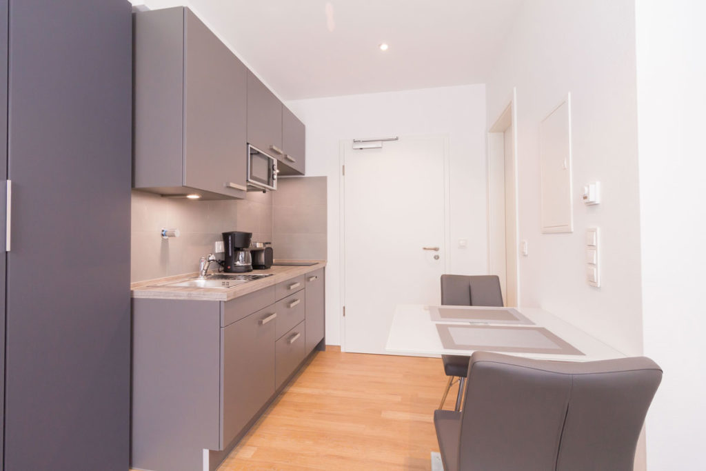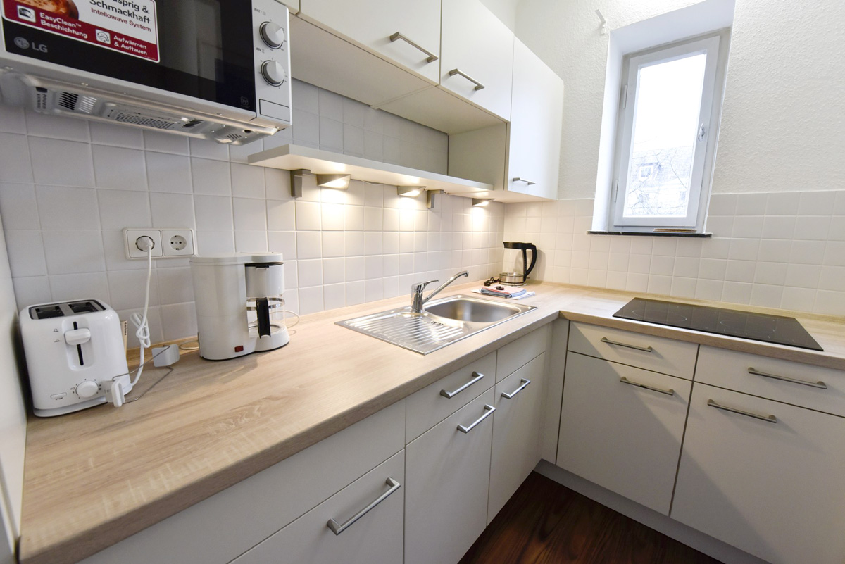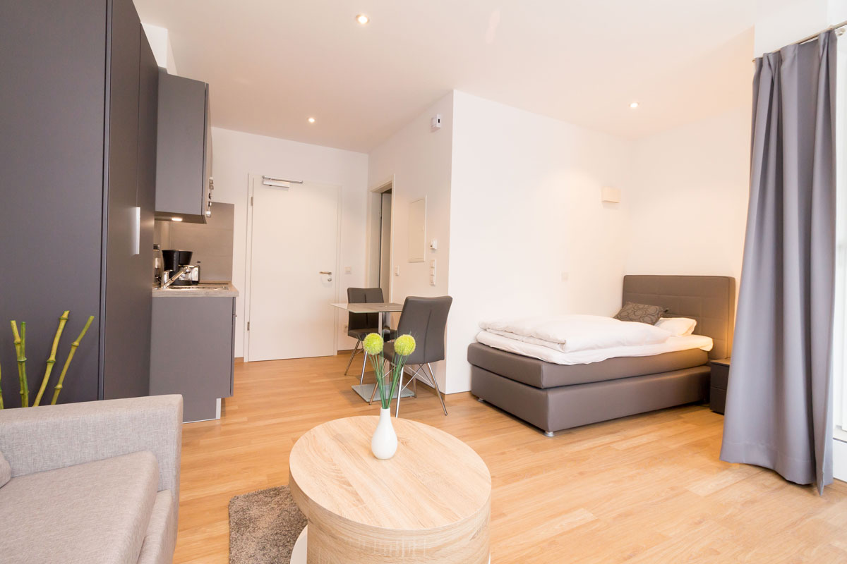 Sie wohnen für den gebuchten Zeitraum in den „eigenen vier Wänden“, komplett möbliert und ausgestattet und müssen sich nicht um die Reinigung und den Wäschewechsel kümmern. Das übernehmen wir für Sie — wie in einem Hotel. Wir reinigen die Apartments einmal wöchentlich und wechseln Bettwäsche und Handtücher. Selbstverständlich können Sie Ihre eigene Wäsche gegen Gebühr auch im Haus waschen.